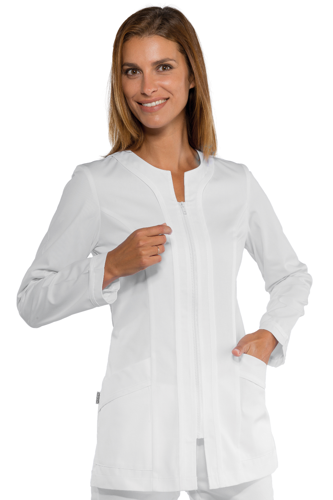 La casacca Aruba è una camicia da donna a manica lunga bianco. Adatto al settore estetico, sanitario, alimentare e medico. come divisa da lavoro per aziende di servizi. Con bottoni a pressione, collo a girocollo e 2 tasche e vestibilita sciancrata.