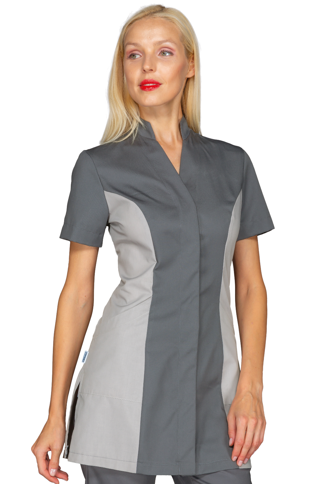 Casacca donna Copacabana a mezza manica antracite e grigio. Ideale per settore alimentare sanitario e estetico. Utilizzata come divisa da lavoro per aziende di servizi, estetista. Con bottoni a pressione e due tasche.