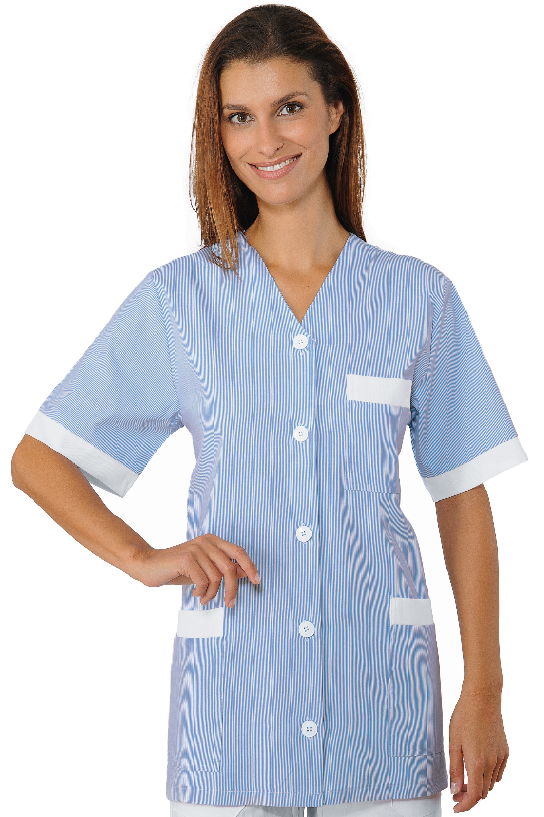 La Casacca Medina è una camica da donna a mezza manica a righe azzurre. Ottima per settore alimentare estetico e sanitario. Utilizzata come divisa da lavoro per aziende di servizi o in alberghi e hotel per donne pulizie o servizio in camera.