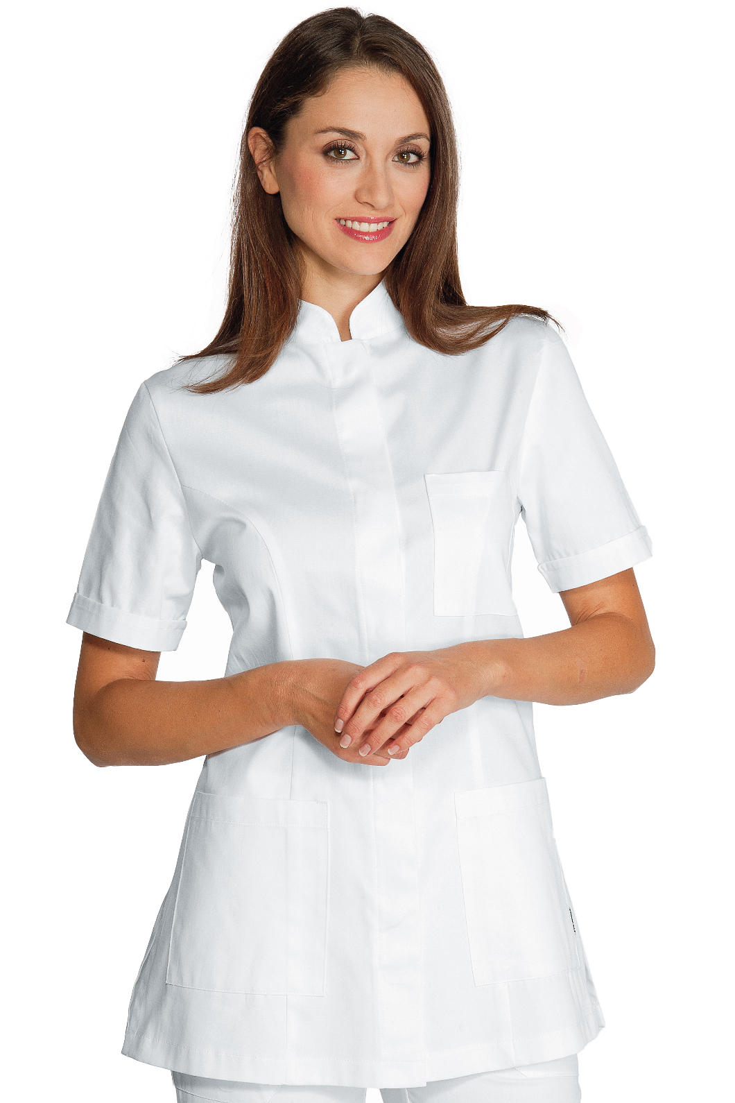 La Casacca Panarea è una camicia da donna a mezza manica bianco. Per settore medico estetico e sanitario. Utilizzata come divisa per dentista e infermiere. Collo alla coreana, Con tre tasche di cui una al petto e bottoni coperti.