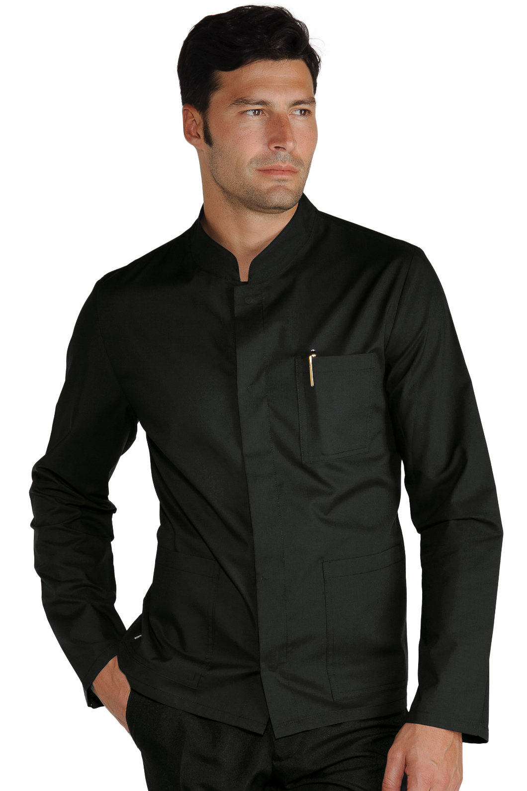 Casacca Coreana extralight a manica lunga nero. Ideale per settore alberghiero e ristorazione. Divisa da lavoro per facchino, fattorino, ristoranti e catering. Con 2 tasche applicate.