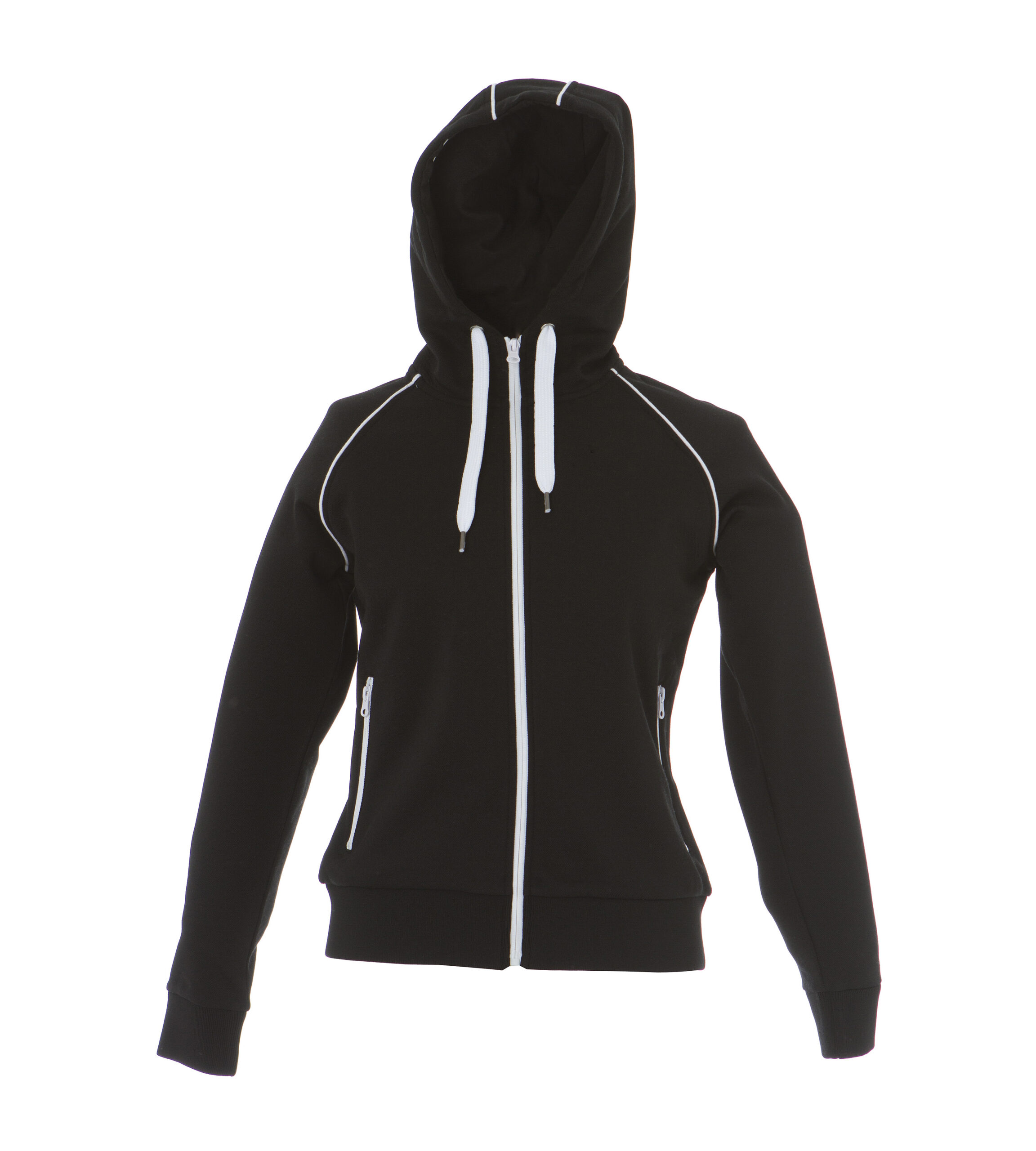 – Cappuccio foderato con cordini in contrasto