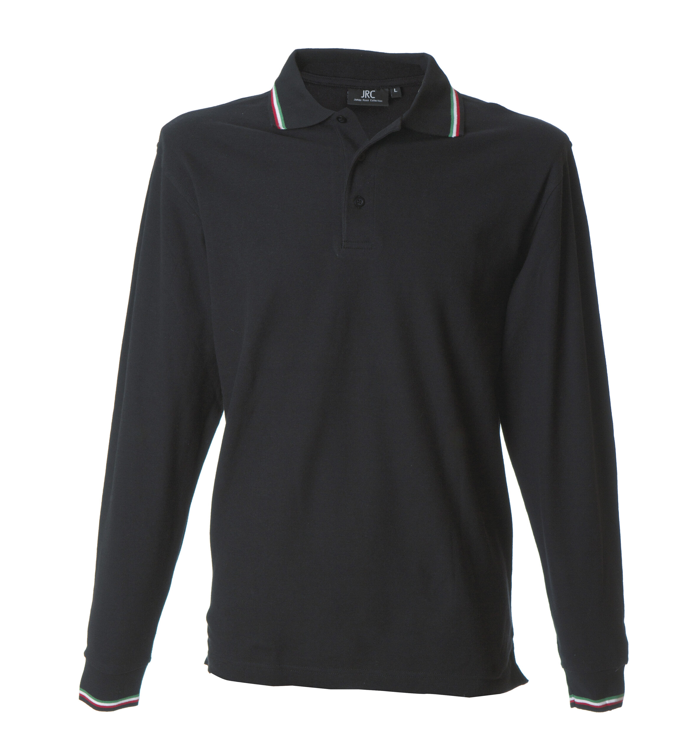 – Piping tricolore su colletto e polsino manica in rib